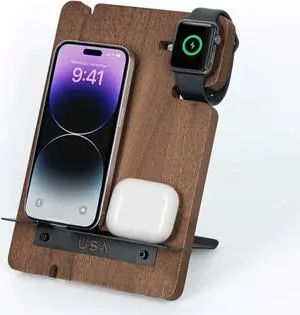 J JACKCUBE DESIGN Wood Charging Docking Station, Phone Watch Charge Dock Stand Multi Device Nightstand Organizer Holder for Smartphone Cellphone Accessories Bedside Caddy -MK243B