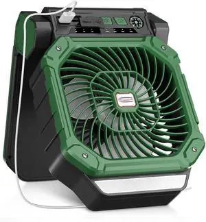 3 Light Modes Ultra Quiet USB-C Solar Powered Fan with Solar Panel, Portable Rechargeable Fan, 4 Speeds, Timer, for Outdoor Indoor Use, Tent, Fishing,Green