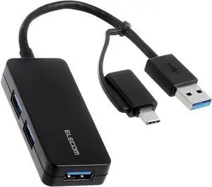 Elecom DST-C05BK USB-C Docking Station, USB-C Hub, PD Compatible, Type C x 2, USB 3.0 x 2, HDMI, D-sub, LAN, SD + Micro SD Slot, Cable Storage, Black
