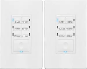 ENERLITES 4-Hour Countdown Timer Switch, 5-10-30-60 Min, 2-4 Hour, for Bathroom Fans, Lights, 120VAC Neutral Wire Required, UL Listed, HET06-W-2PCS, White, 2 Pack