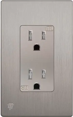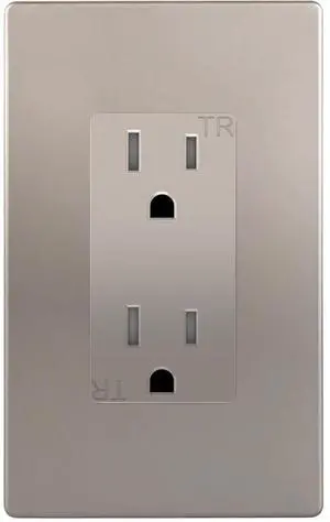 ENERLITES Elite Series Decorator Receptacle Outlet, Child Safe, Tamper-Resistant, Self-Grounding, Residential Grade, 15A 125V, UL Listed, 61501-TR-NKWP, Nickel with Wall Plate