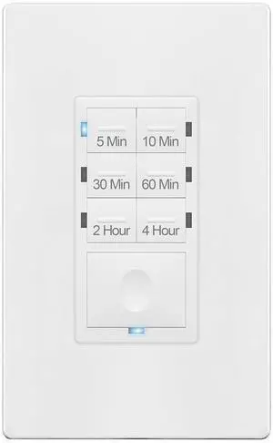 Enerlites HET06-W Countdown Timer Switch, Fan Switch Timer, Timer Switch for Lights, Bathroom Timer Switch, Wall Switch Timer, 5 min4 hrs