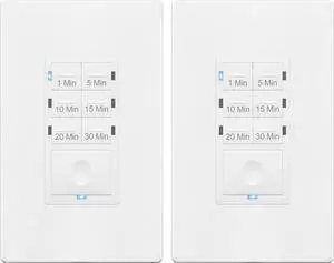ENERLITES Countdown Timer Switch for Bathroom Fans and Household Lights, 1-5-10-15-20-30 Min Settings with Manual Override, Always On Blue LED, Neutral Wire Required, UL Listed, HET06A, White, 2 Pack