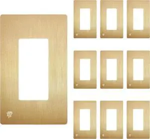ENERLITES Elite Series Screwless Decorator Wall Plate Child Safe Outlet Cover, Glossy, Size 1-Gang 4.68" H x 2.93" L, Unbreakable Polycarbonate Thermoplastic, SI8831-BGD-10PCS, Brushed Gold (10 Pack)