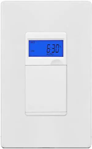 ENERLITES HET01 7 Days Digital In-Wall Programmable Timer Switch for Lights, fans, and Motors, Single Pole, Neutral Wire Required, 7-Day 18 ON/OFF Timer Settings, With Blue Backlight, White