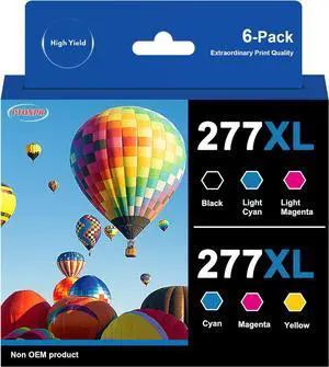 277 277XL Ink Cartridges Combo Pack High Yield PTONPR Replacement for EPSON 277XL 277 T277 Ink Cartridge with XP-850 XP-860 XP-950 XP-960 XP-970 Printer (6-Pack, 1BK 1C 1M 1Y 1LC 1LM)