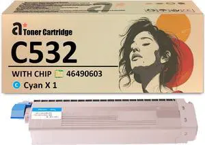 C532 Toner Cartridges Replacement for OKI C532 46490604 46490603 46490602 46490601 Toner Cartridge Compatible for OKI C532dn C542dn MC563dn MC573dn C532 C542 Printers, 1 Cyan