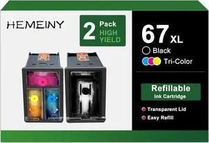 HEMEINY 67XL Refillable Ink Cartridges Compatible with HP Envy 6052 6055 6058 6075 Pro 6452 6455 6458 Deskjet 1255 2732 2752 2755 4140 4152 4155 4158 Printers