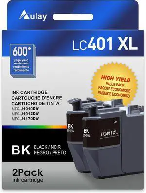 LC401XL Ink Cartridges Compatible for Brother Ink Cartridge LC 401XL Color Standard Yield Work with Brother Printer MFC-J1010DW MFC-J1170DW MFC-J1012DW 2 Black