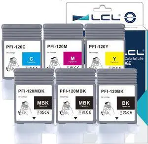 LCL PFI-120 PFI120 130-ml Ink Cartridge Replacement for Canon PFI-120MBK PFI-120BK PFI-120C PFI-120M PFI-120Y for Canon ImagePROGRAF GP-200 GP-300 TM-200 TM-205 TM-300 TM-305 (6-Pack 2MBK+KCMY)