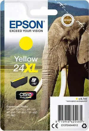 Epson 24XL - Print Cartridge - XL Size - 1 x Yellow - 740 Pages - Blister - for Expression Photo XP-750, XP-850, XP-950, Expression Premium XP-750, XP-850