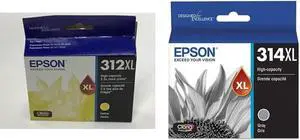 Epson T312XL420 Claria Photo HD Yellow High Capacity Cartridge Ink & T314XL Claria Photo HD Ink - Gray (T314XL Gray)