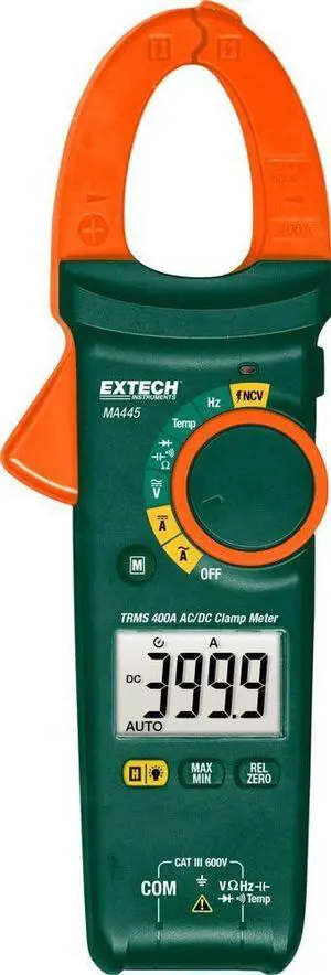 Extech MA445 400A True RMS AC/DC Clamp Meter with NCV Detector, 1.2" Jaw Opening, Backlit Dual Display, 40,000 Count Multimeter, Inrush Current, Frequency, Duty Cycle, Diode & Continuity Tester