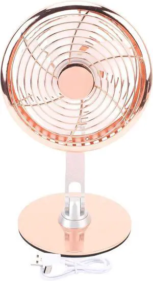 Mumusuki USB Desk Fan 3 Speed Adjustable Quiet Metal Retro Desktop Fan 360 Degree Rotation Rechargeable with 2200mAh Battery for Office Home Bedroom (Rose Gold)