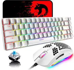 60%Wired Mechanical Keyboards and Mouse Combo RGB Backlit Gaming Keyboard+6400 DPI Honeycomb Mouses+Large Mouse Pad,Ergonomic,62-Key Anti-Ghosting,Compatible with Xbox,PS4,PC,Laptop(White/Red switch)