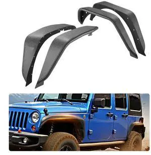 VEVOR Fender Flare, Front & Rear Fender Flares Compatible with 2007-2018 Jeeps JK/JKU 2/4 Doors, Fine-Textured Black Paintable Off-Road Steel Liner Set, Fenders for Jeep JK, Rust-Resistant Coating