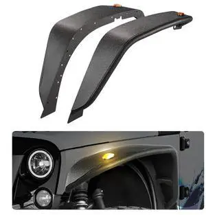 VEVOR Fender Flare, Front Fender Flares Compatible with 2007-2018 Jeep JK/JKU 2/4 Doors, Off-Road Steel Liner Set with LED Lighting, Fenders for Jeep JK, Fine-Textured Black Paintable Wheel Flares Set