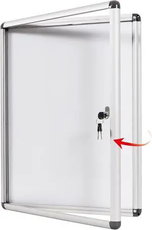 Swansea Enclosed Bulletin Board Magnetic Dry Erase Noticeboard Lockable Display Boards White with Aluminium Frame 26x20inch(4xA4)