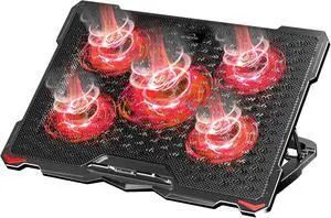 AICHESON Laptop Fan Cooling Pad for 15.6-17.3 Inch Laptops, 5 Cooler Fans with Red Lights Computer Desk Cooling Stand Chiller Mat, S035RED