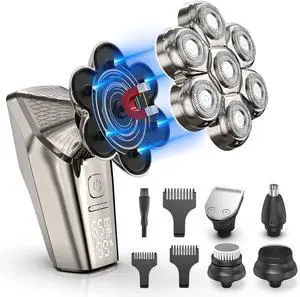 Head Shavers for Bald Men, Beedove Upgraded Magnetic Interface 6 in 1 Wet Dry Electric Shaver, IPX7 Waterproof Rechargeable Electric Razor with LED Display, 7D Rotary Shaver Grooming Kit