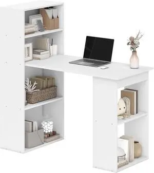 HOMCOM Modern Computer Desk with Storage Shelves, 47" Writing Table Workstation with Bookshelf for Home Office, White