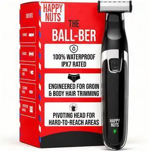 HAPPY NUTS The Ballber Electric Body Hair Trimmer for Men - Mens Body Groomer Kit for Privates - IPX7 Waterproof Shaver for Hard to Reach Areas