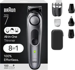 Braun All-in-One Style Kit Series 7 7410, 100% Waterproof 8-in-1 Beard & Body Trimmer for Manscaping, with 8 tools and 100-minute Cordless Runtime