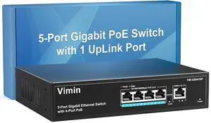 4 Port Gigabit PoE Switch with 1 Uplink Gigabit Ports, VIMIN 5 Port Unmanaged Ethernet PoE Switch with 72W Power, Support IEEE802.3af/at, VLAN, Metal Housing, Desktop or Wall-Mount, Plug & Play