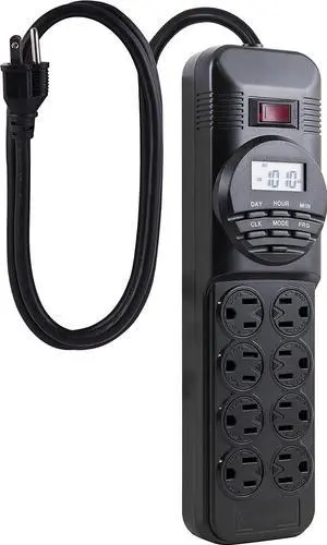 GE 15077 7-Day Digital Plug-in Power Strip Timer, 8-Outlet