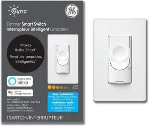 Cync 3-Wire Smart Switch Dimmer, White, Wi-Fi, Works with Alexa and Google Assistant Without a Hub, No Neutral Wire Required, Single-Pole/3-Way Replacement