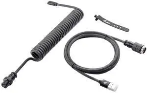 GUNMJO Pro Custom Coiled USB C Cable for Gaming Keyboard, Metal Aviator Mechanical Keyboard Cable with Right Straight Out Aluminum Aviator, 1.5M USB-C to USB-A, Carbon Black Color, GM-CACA61CA-BK-OW
