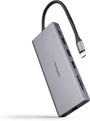 NANOCABLE 10.16.4612 USB-C Hub 12-in-1, USB-C 3.1 to 3xUSB-A 3.2 + USB-C 3.2 + USB-C PD + 2x HDMI 4K@60Hz + DP 4K@60Hz + RJ45 1Gbps + TF + SD + 3.5mm Audio Jack