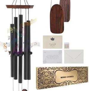 Wind Chimes for Outside, 48 in, Deep Tone Wind Chimes with 5 Tubes, Unique Large Memorial Wind Chimes for Anniversary, Amazing Outdoor Decor for Your Patio, Porch, Garden and Backyard, Black