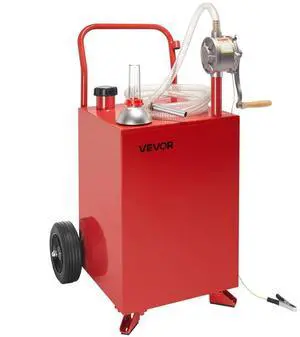 VEVOR 20 Gallon Fuel Caddy, Gasoline & Diesel Fuel Tank with Manual Transfer Pump, Portable Fuel Storage Tank with 2 Wheels & 10 ft Hose, Gas Caddy for Cars, Lawn Mowers, ATVs, Boats, More, Red