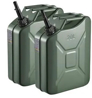VEVOR Metal Fuel Container, 5.3 Gallon, Fuel Jerry Can with Spout and Comfort Handle, 6 L/min Max Flow Rate, Leakproof & Corrosion-resistant Metal Gas Tank Most Cars Motorcycle ATV UTV, Green, 2 Packs