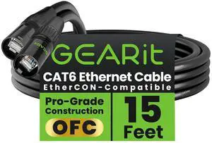 GearIT CAT6 Ethernet Cable, EtherCON-Compatible RJ45 Connectors for Pro Audio, Aluminum Shielded, Oxygen Free Copper - 15 ft. - Black