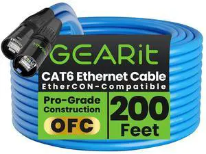 GEARit Shielded CAT6 Ethercon Cable (200 Feet) Professional Audio & Lighting RJ45 EtherCON-Compatible Cable for Studio, Stage, Concerts - 200ft Blue