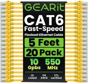 GearIT 20-Pack Cat6 Patch Cable 5 Feet Cat 6 Ethernet Cable Snagless Flexible Soft Tab - Preimum Series - Yellow