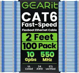 GEARit Cat 6 Ethernet Cable (100-Pack 2 Feet) Cat6 Network Patch, 10Gbps, RJ45, Snagless Cord, Gold-Plated Connectors, Internet for PC, TV, Tablet, Router, Printer, Servers, IT Data Center - Black