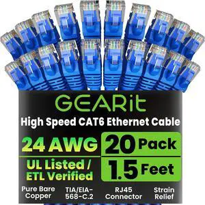 GearIT Cat 6 Ethernet Cable 1.5 ft 18-Inch (20-Pack) - Cat6 Patch Cable, Cat 6 Patch Cable, Cat6 Cable, Cat 6 Cable, Cat6 Ethernet Cable, Network Cable, Internet Cable - Blue 1.5 Feet