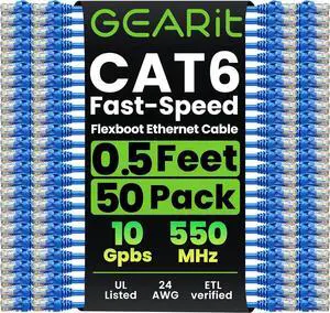 GearIT 50-Pack Cat6 Patch Cable 0.5 Foot / 6 Inches Cat 6 Ethernet Cable Snagless Flexible Soft Tab - Preimum Series - Blue