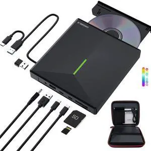 External CD DVD Drive for Laptop 8-in-1 USB 3.0 & USB-C DVD Player CD-ROM/RW Disc Reader Writer Burner with Carrying Case & SD Card Slots + USB Ports for Mac PC MacBook Windows 11/10 Computer