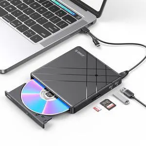 External DVD CD Drive for PC USB 3.0 Type-C CD Burner Portable CD/DVD +/-RW Drive/DVD USB Disk Drive with USB Ports and TF/SD Card Slots Compatible with Laptop Windows Linux OS Mac-ORHU3-01