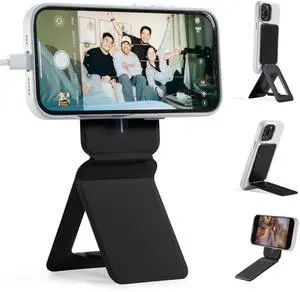 Phone Tripod Stand Selfie Stick for iPhone, Multi-Angles iPhone Stand, Lightweight & Portable Phone Holder, Strong Magnets, MOVAS Vegan Leather, Travel Essentials, Jet Black (Without Card Slot)