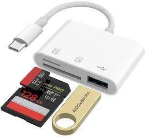 USB C to SD Card Reader, SD Card Adapter with SD MicroSD USB 3 Ports, USBC Memory Card Reader for iPhone 15 16, iPad, Mac, MacBook Pro/Air, Android and More USB-C/Type C Devices