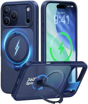 Official Blue for iPhone 17 Pro Max Case with 360 Spin Magnetic Stand [Camera Protection] [18FT Military Grade Protection] [Fit for MagSafe] Shockproof Ring Grip Matte 6.9 Inch