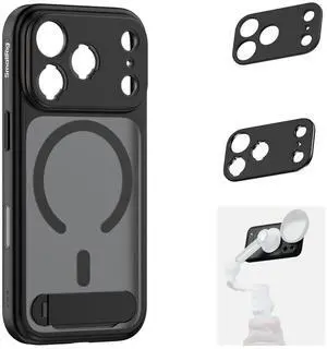 FilMov Phone Case Kit for iPhone 17 Pro Max, Magnetic Case with Adjustable Kickstand, Lens Backplate, Support for MagSafe, for Phone Gimbal Stabilizer,for DJI,for Insta360, Black-5551