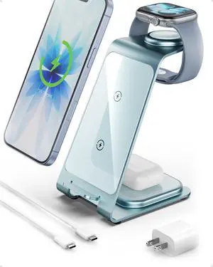 3 in 1 Charging Station for Apple Wireless Charger for iPhone 17 16e 16 15 14 13 12 11 X 8 & for iWatch Charger Wireless Charging Station for Multiple Devices for AirPods 2/3/4/Pro/Pro 2/Pro 3