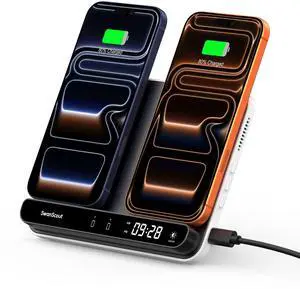 Dual Wireless Charger Stand, SwanScout 504, Foldable Wireless Charging Station Pad for iPhone Air/17/16/15 Series, Samsung Galaxy S25/S24/S23, Google Pixel 10/9/8, Android Phones, AirPods/Galaxy Buds