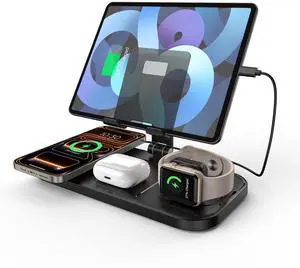 Wireless Charger 4 in 1 for Apple iPhone 17 Pro Max/16/15/14 Series, AirPods Pro 2, iPad Stand, Watch Charger for iWatch Series 10/9/8/7/6, Wireless Charging Station for Multiple Devices
